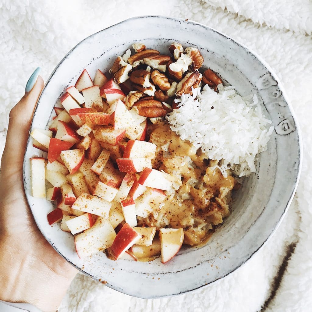 - Top the oatmeal with apple, pecans, and coconut.