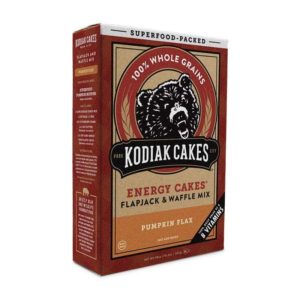I love Kodiak cake mix, because you Can make guilt free pancakes, waffles, muffins and more! One serving of this mix has 10 grams of protein and 5 grams of fiber for only 190 calories!